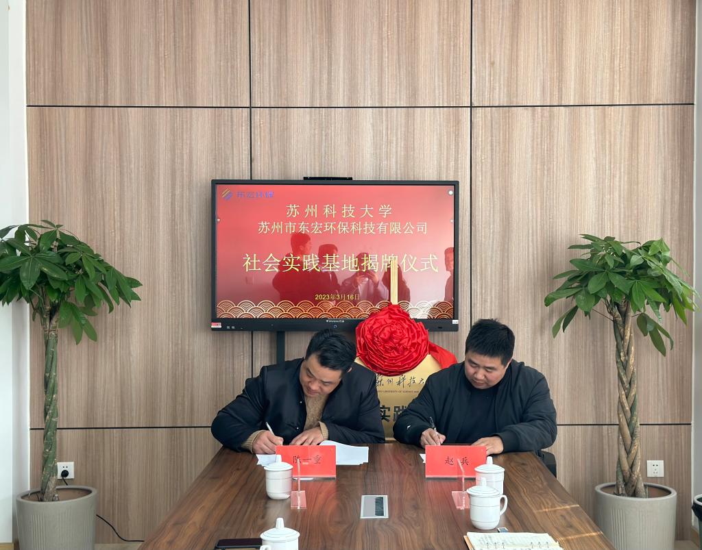 党委副书记任云高、学工办主任陈一重及毕业班辅导员前往校友企业苏州东宏环保科技有限公司参观交流,与东宏环保公司签订了就创业基地合作协议及共建大学生社会实践基地协议,并举行了揭牌仪式。