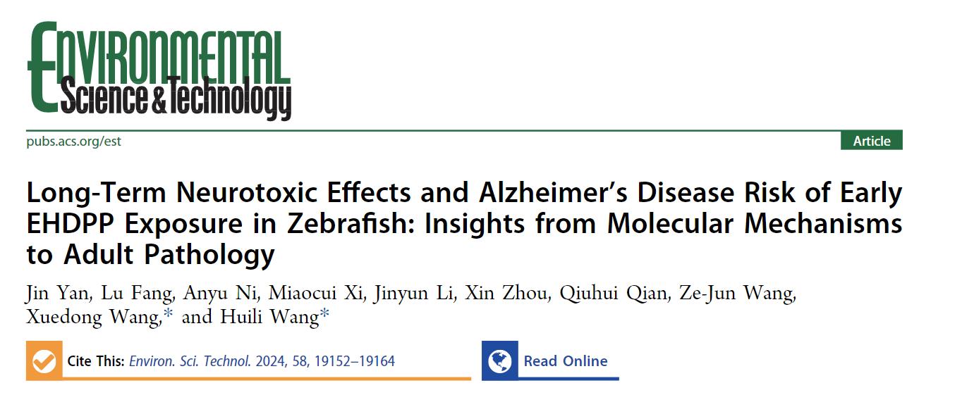 环境监测与毒理研究团队,在环境类顶尖学术期刊Environmental Science & Technology上发表研究论文两篇,一篇题目为“Long-Term Neurotoxic Effects and Alzheimer’s Disease Risk of Early EHDPP Exposure in Zebrafish: Insights from Molecular Mechanisms to Adult Pathology”,彩金论坛