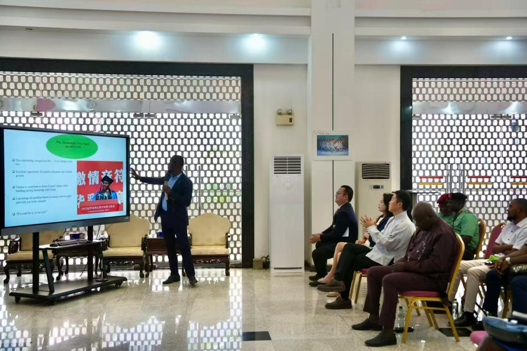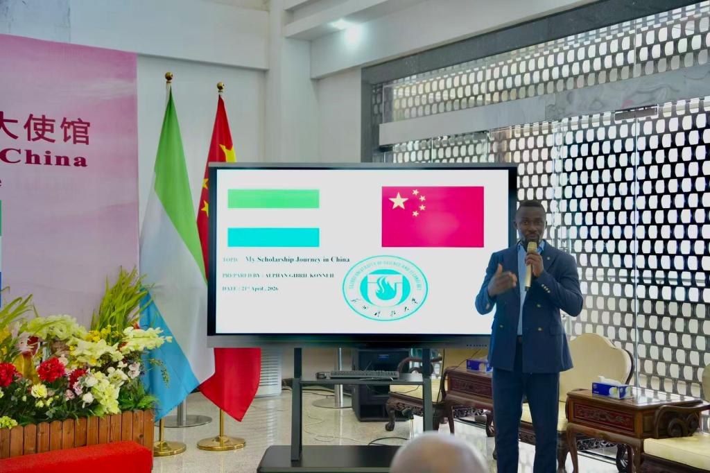 2023届环境工程专业国际硕士毕业生、原班长Alphan Gibril Konneh受邀前往中国驻外使馆,面向2026年度中国政府商务部奖学金(MOFCOM Scholarship)申请人开展交流分享。